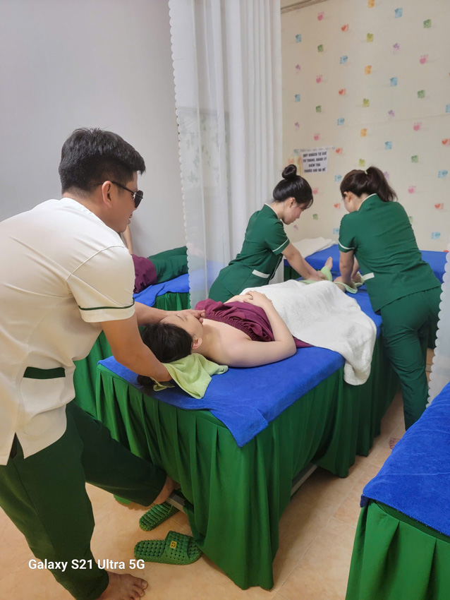 Sau khi đi huyệt, kỹ thuật viên tiếp tục xoa bóp để giúp cơ bắp được thư giãn hoàn toàn.